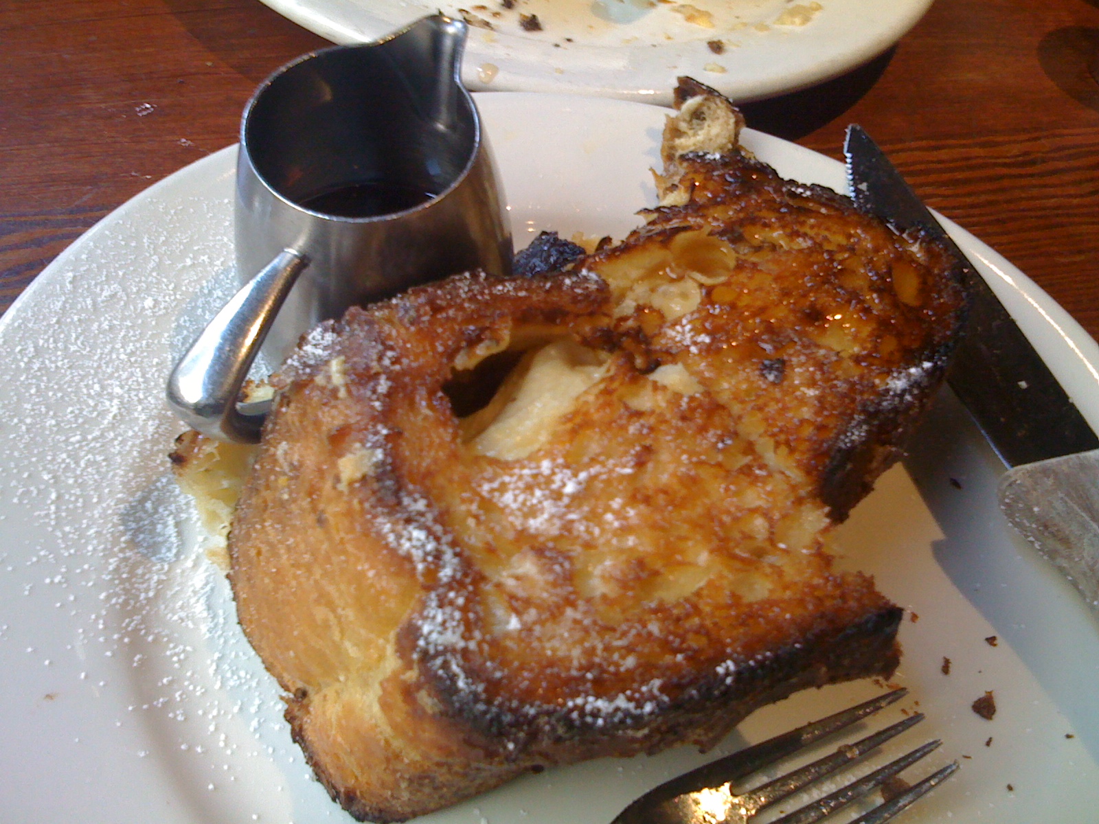 When the french toast was served, it didn’t look like your average french toast. Most french toasts are made with white or Challah bread, but this french toast is made from a thick slice of french bread, with the outer edges crispy and almost burnt, and the inside steaming hot and fluffy. It is not your traditional french toast that is fluffy and soft and gets soggy with syrup. Even with syrup it still is half crispy on the outside and fluffy on the inside. Also, Ditch Plains soaks the bread OVERNIGHT in the batter to really get all the flavor soaked within the thick slice of bread, then serves the french toast the next day with powered sugar and warm maple syrup on the side. It was the best french toast I’ve ever had and totally worth the trip.