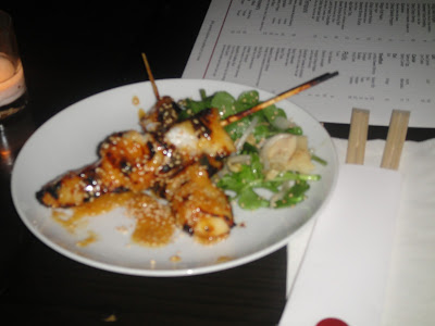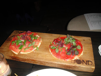 BondSt is located on a quiet street in NoHo, and there isn’t even a name on the outside of the restaurant- just the address. We walked in and the table wasn’t ready so they recommended us to go out the door and down stairs (as if you were going underground), to the lounge and have a drink as we wait for the table. The lounge was packed and had a very cool, hipster vibe. It was very dim light and there were different rooms with curtains and black leather benches low to the ground that people were sitting around ordering food and drinks. The bar was also packed with people and music was loud. It was a cool vibe, kinda similar to Geisha House in LA, but more classier and upscale. I defintely had a different vibe than the restaurant upstairs which was way more quiet. We were starving so we order a coupleof excellent appetizers while we waited for our table.