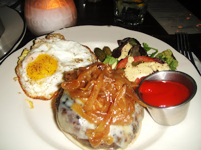 BOWERY BURGER with a fried egg, gruyere cheese & grilled onion