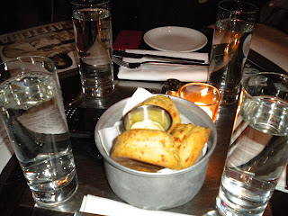 Warm, cheese biscuits to brought to the table with our waters. Yum!
