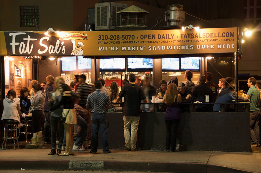 Fat Sal’s is on some other shit. Like I’m talkin’ bout the real deal epic kind of shit. It’s grub food at its finest and the best part about it, it’s open late night. It’s located in Westwood on Gayley right off the UCLA campus (I’m a proud UCLA alumni btw). It’s right next to In’ N Out on Gayley where fraternity row is. They are opening another location in Hollywood too, coming soon! Fat Sal’s is a gold mine. It’s amazing food for cheap for all the broke college students lol and it’s in the perfect location! It’s a little stand (no inside seating), with a a couple stools and bar counters outdoors to eat. The menu is absolutely ridiculous lol. Jerry Ferrera from Entourage AKA “Turtle” is one of the co-owners.