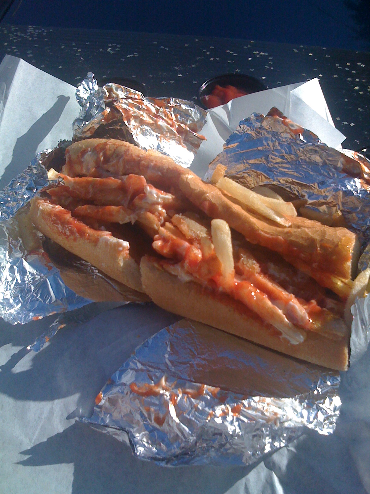 Today for lunch, I had pretty much a heart attack in a baguette lol. But is was sooooooooo bomb. Now, THIS is my kind of food. If you eat too healthy, this isn’t the place for you lol. You don’t see many women devouring this kind of food, especially in LA where you have the “salad eaters”, you know, the girls who eat rabbit food all day.