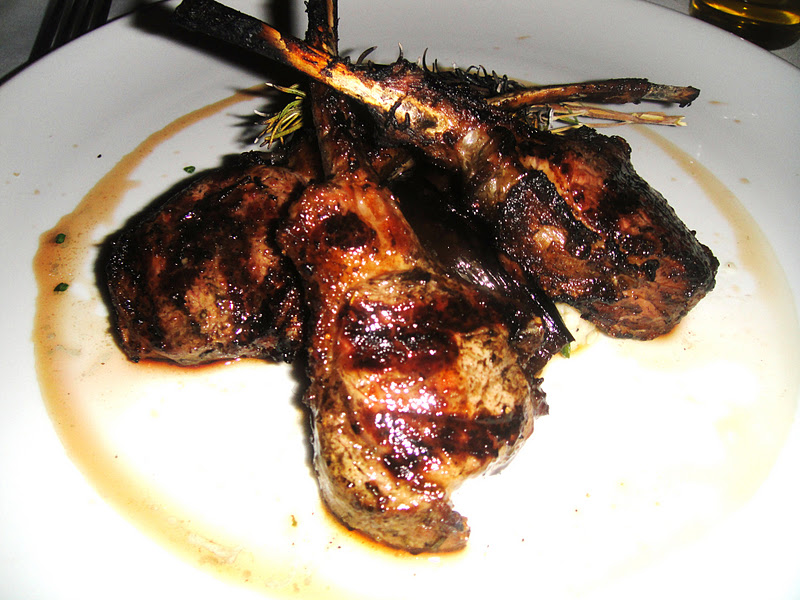 Grilled lamb chops smoked a la minute with a bouquet of Herbs de Provence goat cheese & chive gnocchi, roasted honey eggplant – Rosemary Garlic Olive Oil