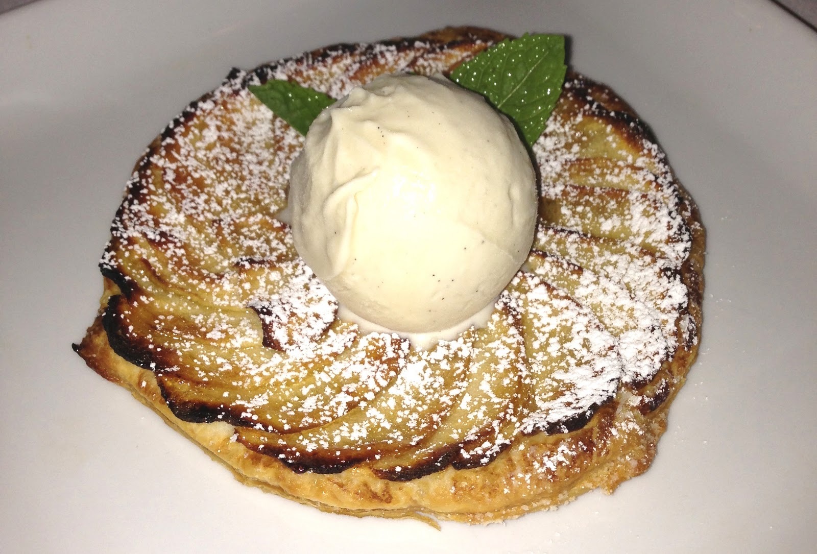 Crisp puff pastry with caramelized apples & vanilla ice cream