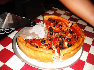 After a long, fun day at Lollapulooza in Grant Park, downtown Chicago, I decided to stop late night at Giordano’s on the way back to my hotel. I had already tried the famous Lou Malnati’s, and wanted to compare it with another famous Chicago pizzeria to see the difference and which was better. It was 11pm, and the place was packed with a long wait. It took over an hour to get our pizza after we ordered it, which they warned us about. Even if the wait isn’t too long at Giordano’s, expect to wait an average of 45 minutes to receive your pizza because it takes that long to make. So make sure you have time and you’re not too famished lol. Anyway when we finally got our pizza, it was something! As most of you know, Chicago style pizza is deep-dish, with the sauce on top and cheese underneath. Giordano’s pizza is stuffed, which makes their pizza famous. We got mushrooms, black olives and garlic stuffed inside the pizza, with massive amounts of cheese and sauce on top. It was definitely delicious and very flavorful. Giordano’s was my favorite pizza I had in Chicago. Although Giordano’s and Chicago deep dish is great, I have to admit I’m still a New York thin-crust style pizza lover at heart! Sorry Chi-town! I still love you though…*MUAH!*