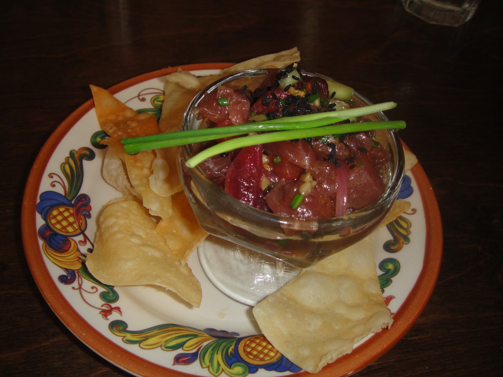 MARINATED HAWAIIAN TUNA POKE WITH WONTON CHIPS