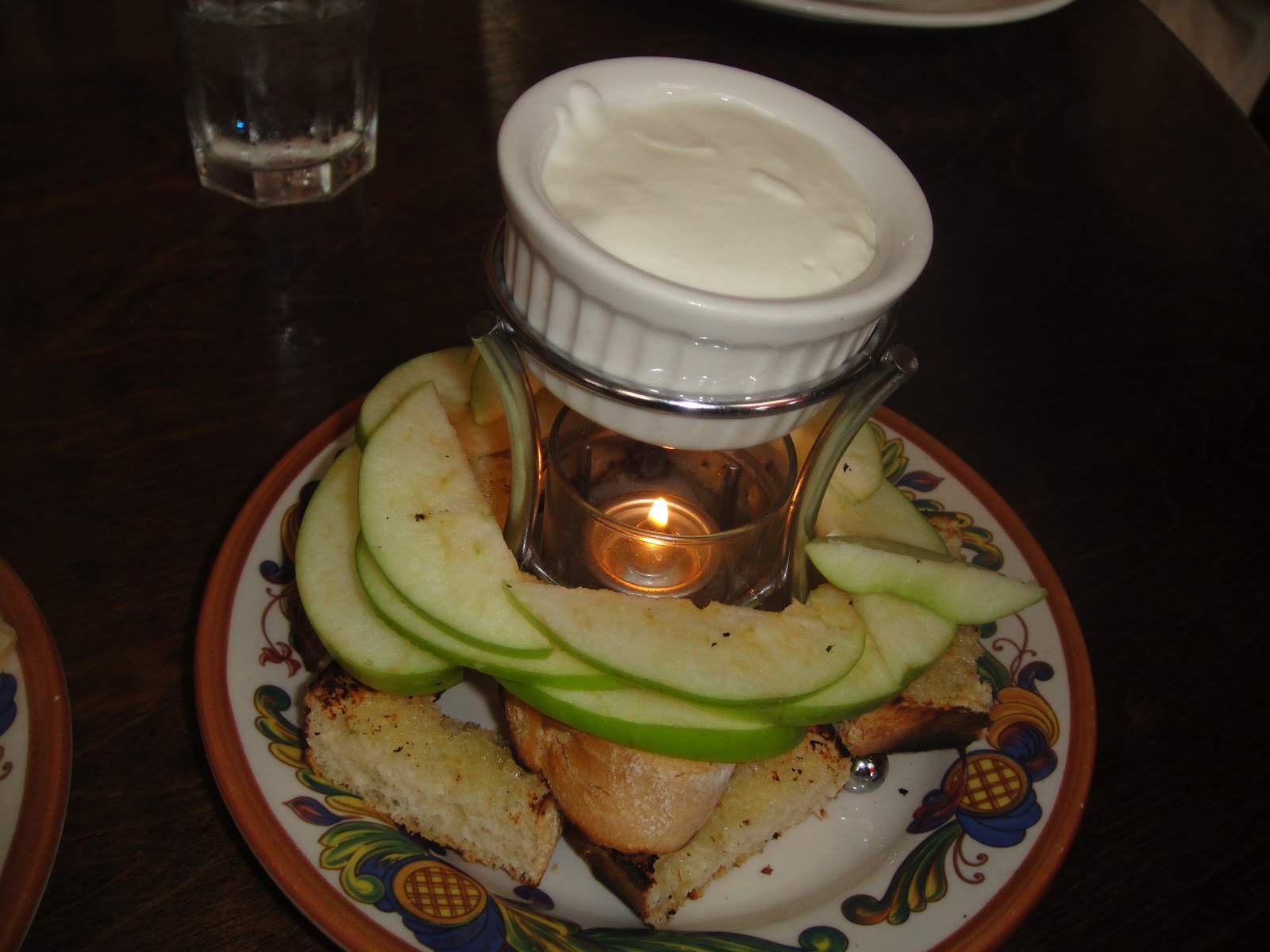 WARM GOAT CHEESE FONDUE WITH GRILLED BREAD & APPLES