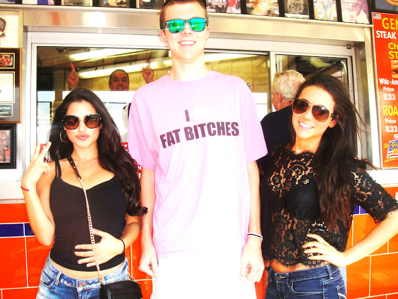 After I ate TWO cheesesteaks, I saw this guy wearing this shirt at Geno’s and thought it was appropriate to take a picture with him. I’m a FAT BITCH! LOL