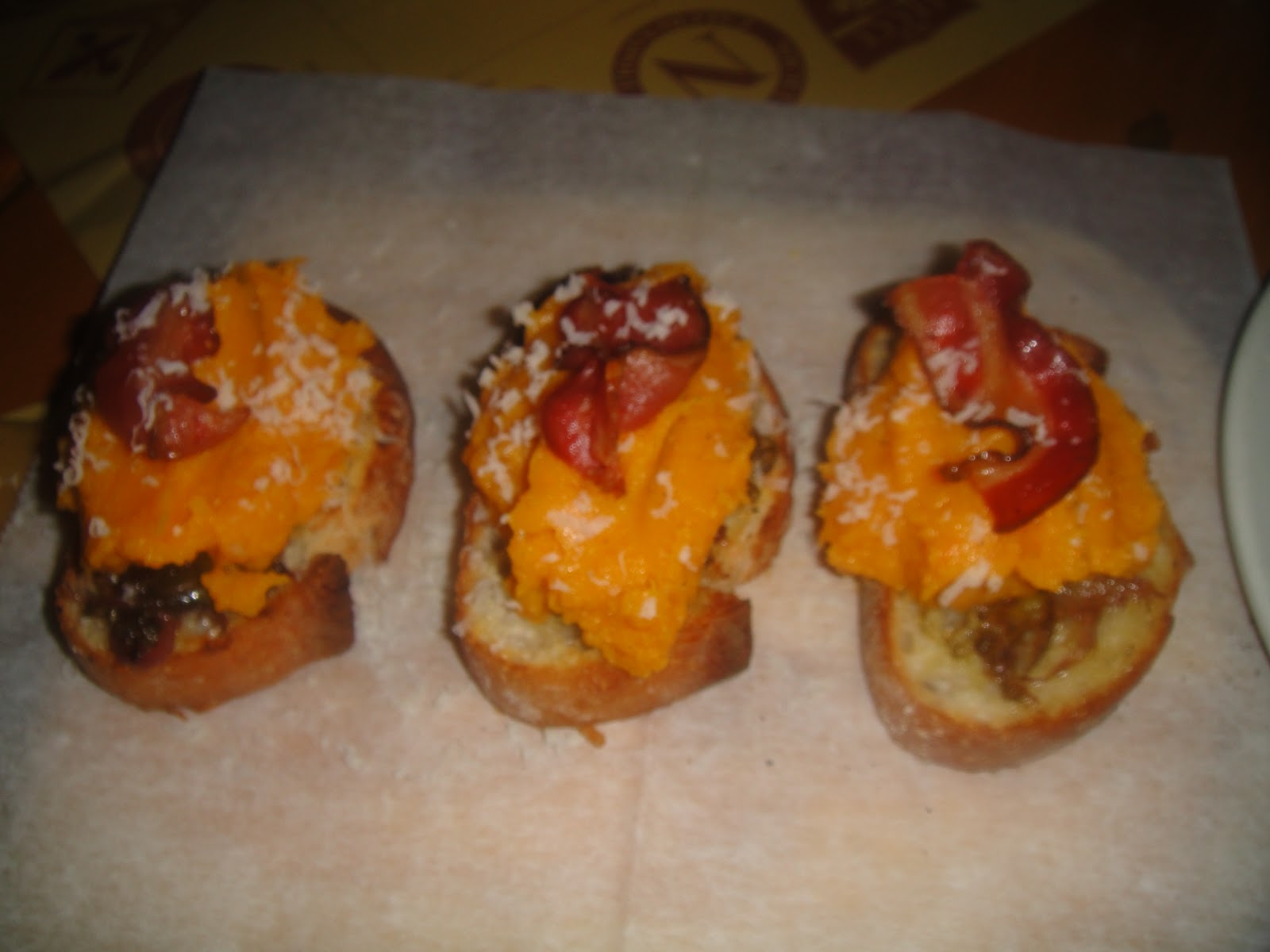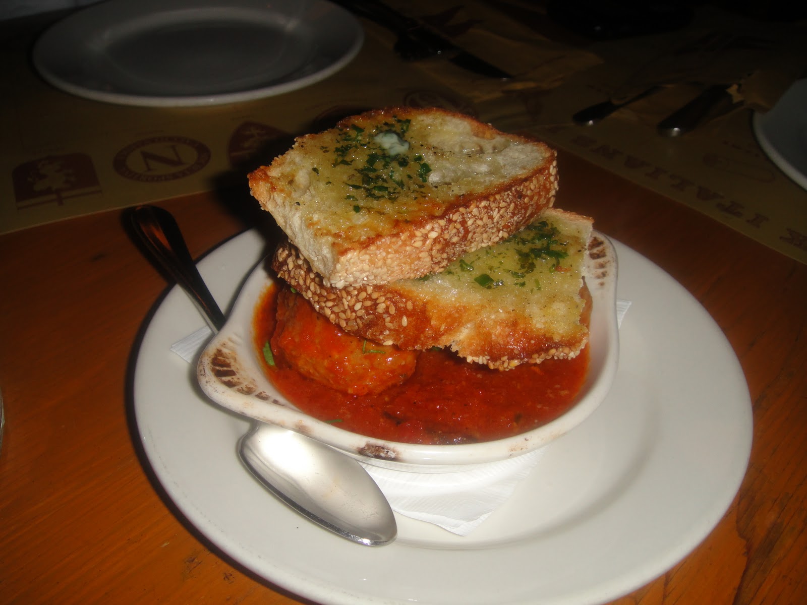 For appetizers we ordered the Butternut Squash Bruschetta with applewood smoked bacon and sauteed bitter greens. The brushetta was interesting. The sweet butternut squash would have been better if it was warm though. We also ordered their famous meatballs with garlic bread. It was good!
