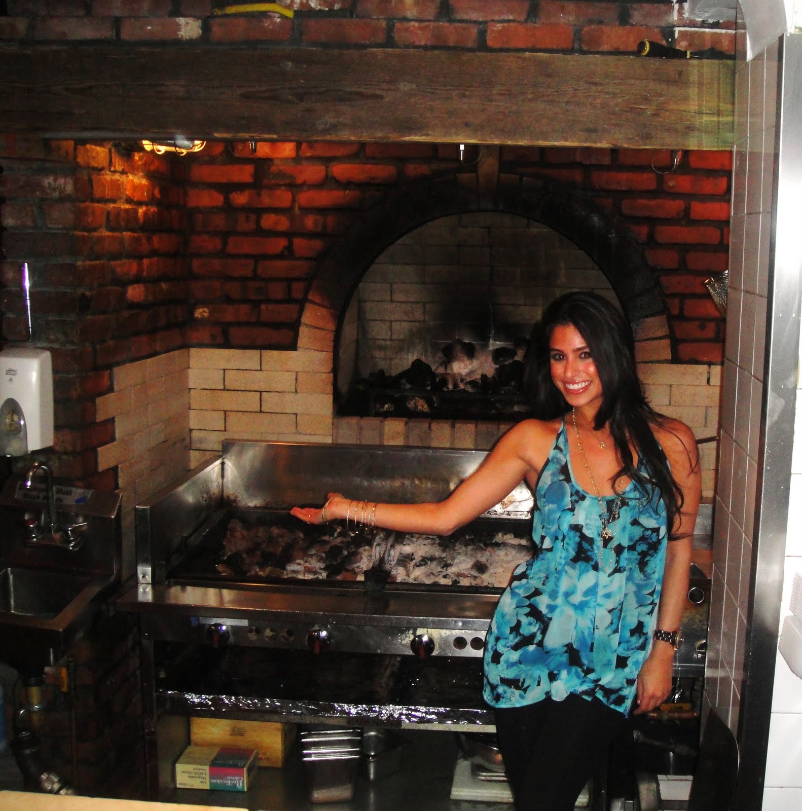 Me in front of the brickstone oven where they cook the pizza!