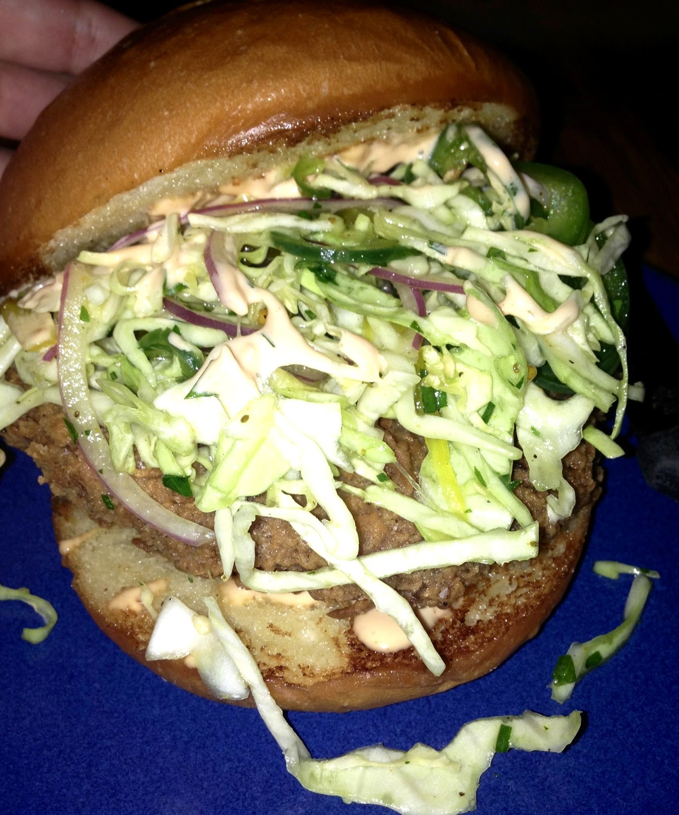 SO yummy! The bread was buttery and soft, the fried chicken crispy, flavorful and cooked perfectly, and I loved the fresh jalapeno and the slaw. The aioli brought it all together to make the perfect sandwich. This sandwich is similar to the fried chicken sandwich at The Honor Bar in Beverly Hills. Both amazing!