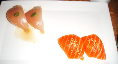 The albacore literally melts in  your mouth. With the warm rice underneath and the cool fresh fish on top, it literally melts in  your mouth. The albacore had a ponzu marinade so it didn’t need soy sauce. This originally came with salmon sushi but I don’t like salmon so I substituted bay scallops for it. The Bay scallop sushi was also great- the rice was warm underneath and the creaminess of the scallops made it the perfect combo. This had flavor too so no need for soy sauce.