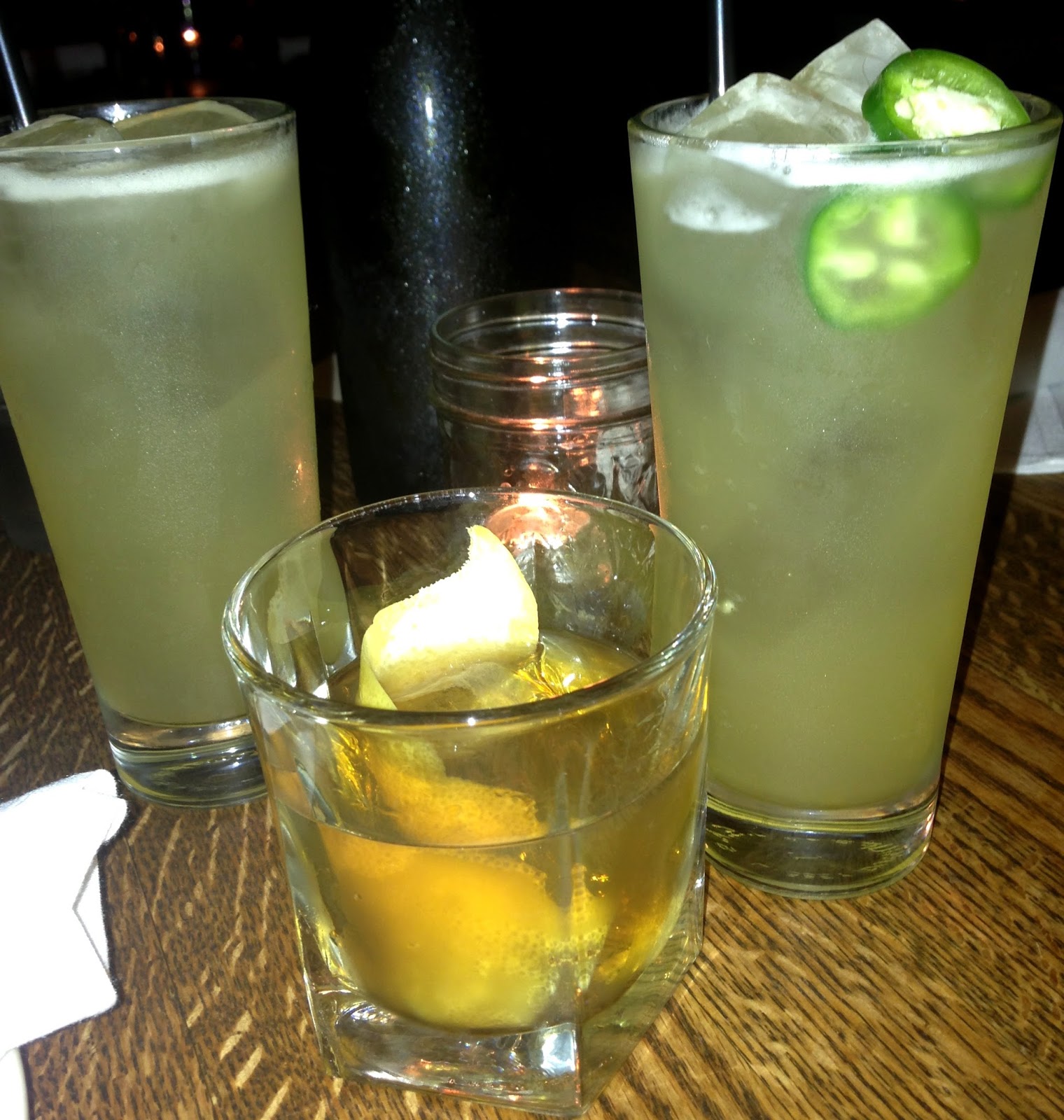 Jalapeno Margarita: Jalapeno, Thyme, Contreau, Tequila, Lime, Agave