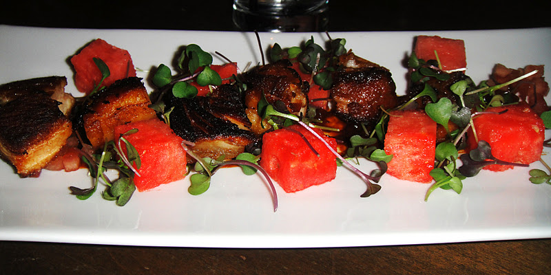 CRISPY PORK BELLY W/ PICKLED WATERMELON RIND AND SWEET & SPICY TAMARIND SAUCE