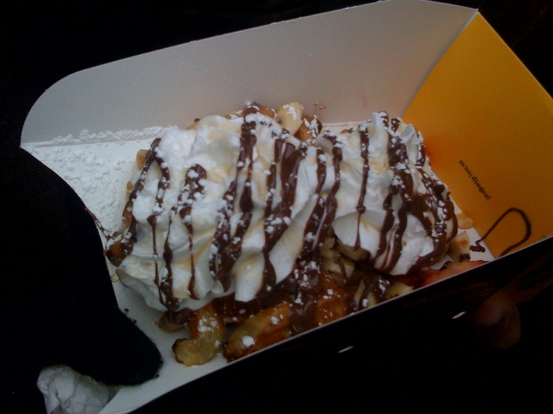 Wafles & Dinges is a famous NYC food truck. It was rated the #1 food truck in the NATION by a show on the Travel Channel and has been acknowledged by many media outlets such as MSNBC, the Daily News, The Today Show, The New York Times, New York Post, Fox’s Good Day New York, and many famous food blogs. This truck is an authentic Belgian waffle dessert truck that goes all over New York City and they post their locations daily through Twitter so people can know where they will be parked. I’ve had Wafles & Dinges twice in New York, and I fell in love the second time I had it. I am not a big dessert person, but they have this spread called Spekuloos Spread, which is like Nutella but better. It looks like peanut butter but tastes like “Belgian gingerbread-cinnamon cookies”. Their Belgian waffles are made fresh on location, and they claim they do it the REAL and right way. The first waffle (that is pictured above with Spekuloos spread, fresh strawberries & bananas, whipped cream and chocolate syrup was the real deal…amazing!) The first time I tried this truck was in Central Park after I went ice skating, and the second time I had it was in the Union Square Market on Sunday during Christmas time. It’s really the perfect street dessert!